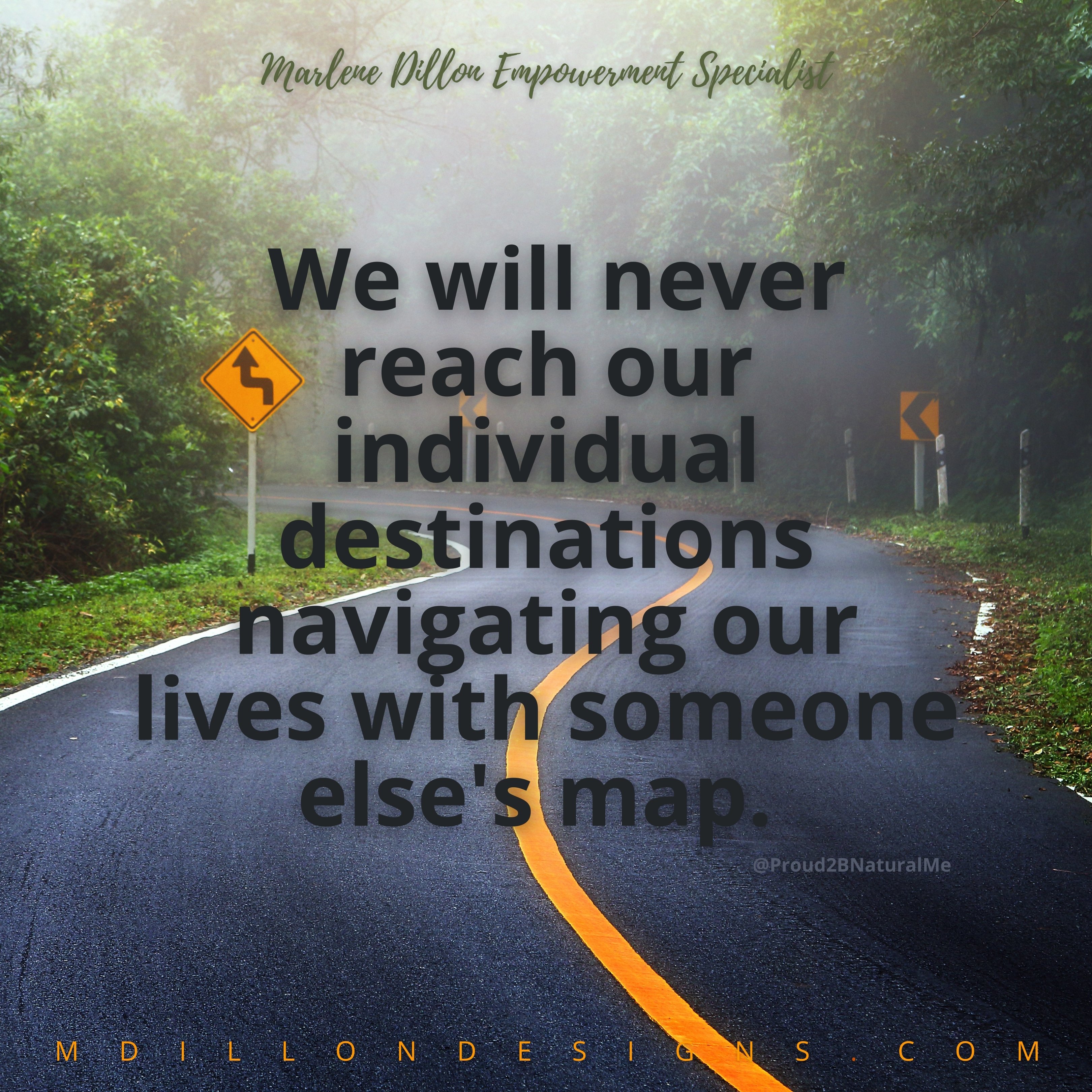 We are all here for our individual journeys. We’ll never reach OUR individual destinations by navigating our lives by THEIR map.