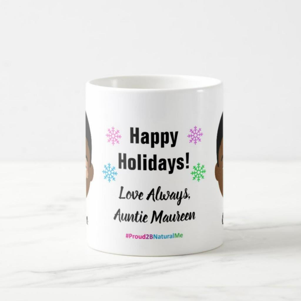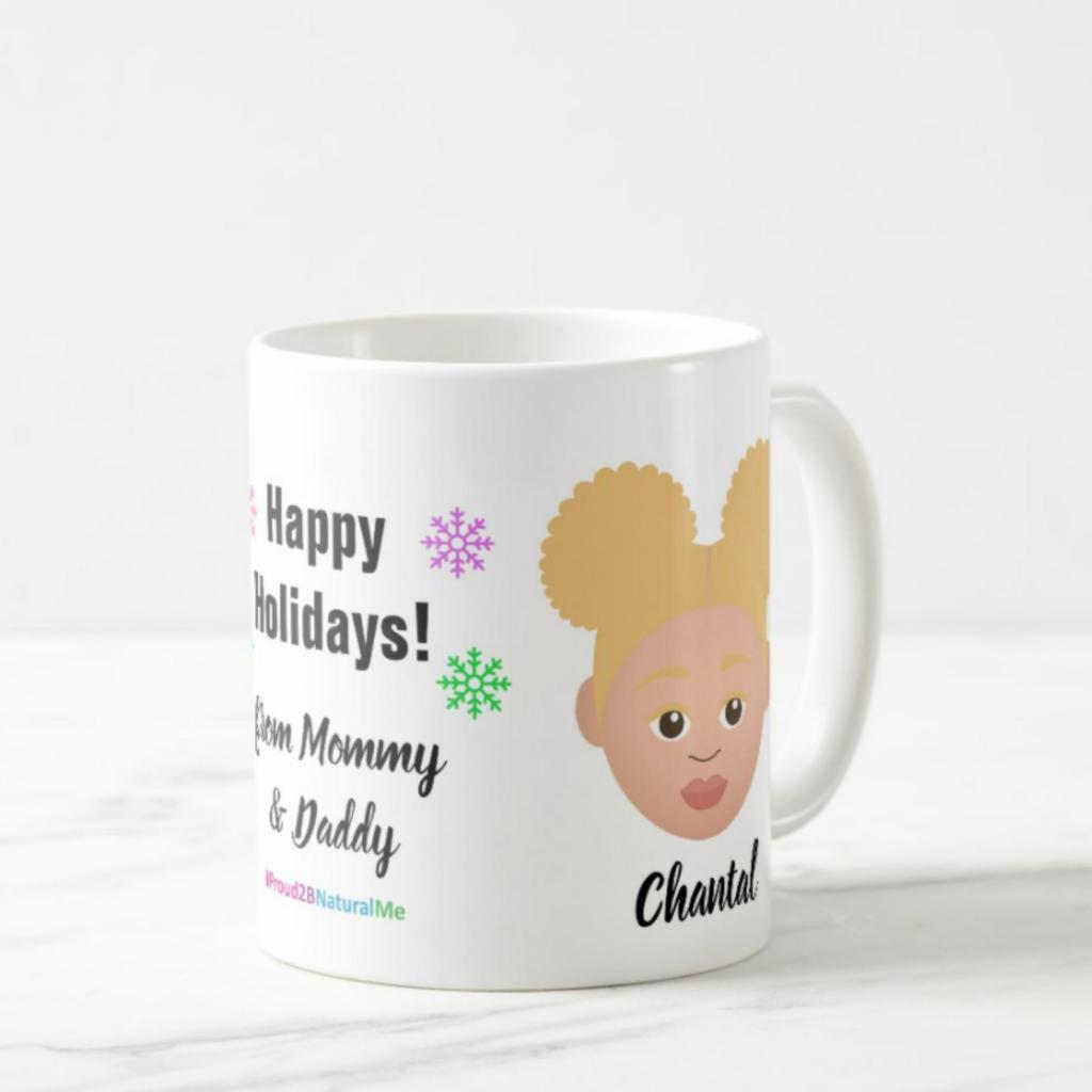 This holiday season, I created (and am creating) gifts that you can personalize for your friends and family members. You can choose from 9 different characters of varying shades of melanin, including vitiligo and albinism. My #Proud2BNaturalMe Holiday Collection products allow you to have your recipient’s name printed directly on their gifts!