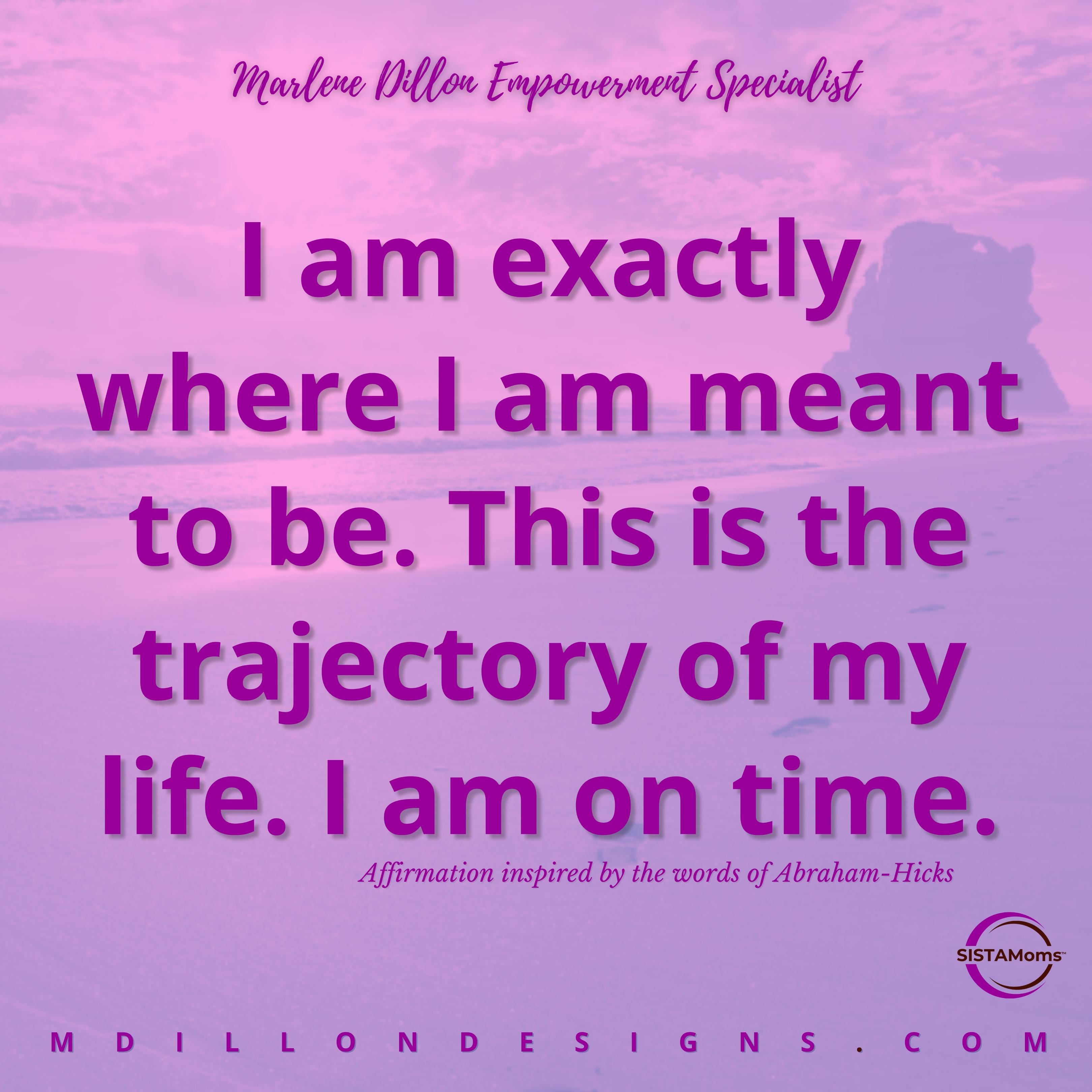 “I am exactly where I am meant to be. This is the trajectory of my life. I am on time.”
