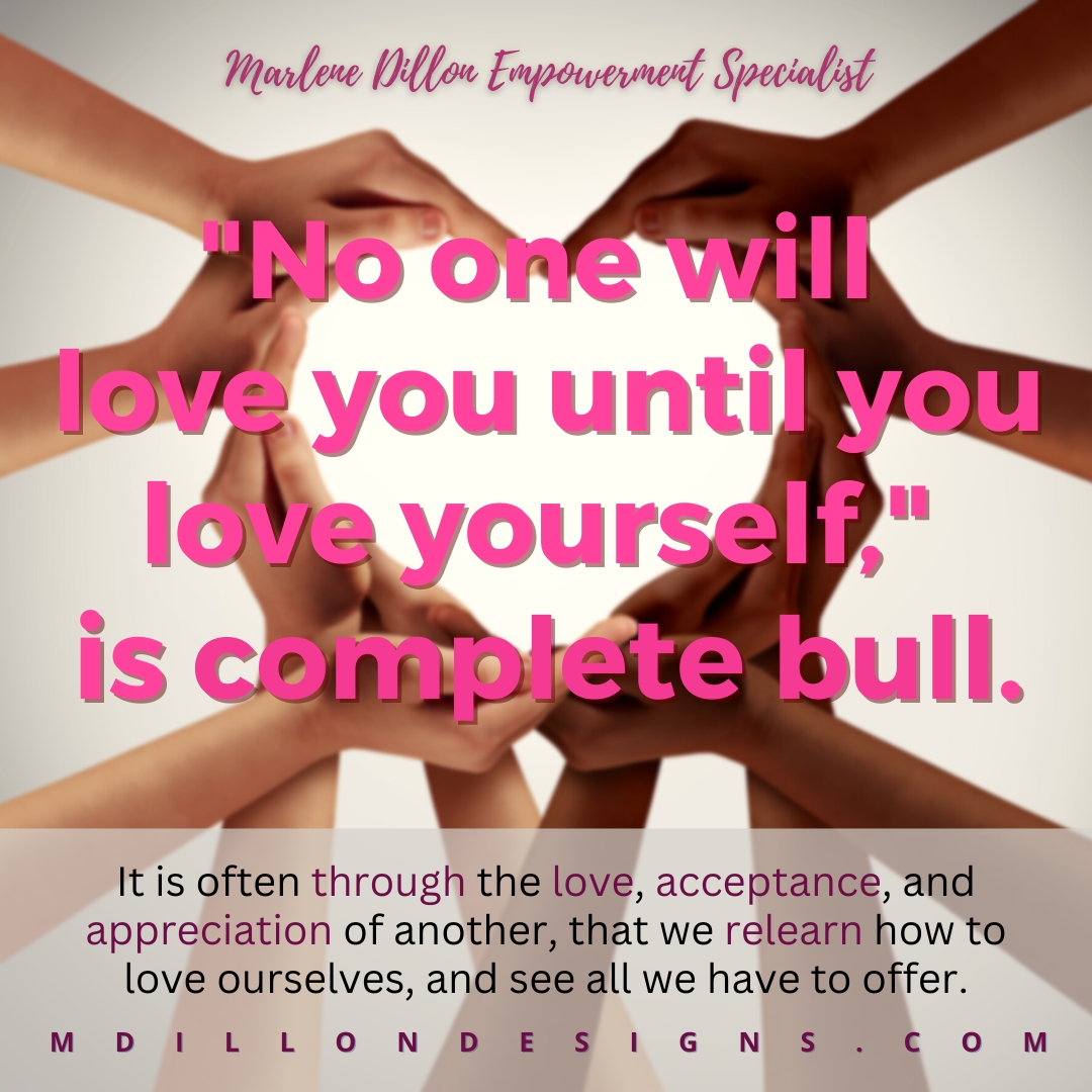 People will tell you that if you don’t love yourself, nobody else will. That’s total bull. Sometimes… better yet… most times a person who doesn’t love themselves comes to know they are lovable because someone shows them that they are. That has been my experience. I came to see myself and my worthiness through others showing and telling me that I am. Whether it was a therapist, an ex, a friend, or a through a comment on a post, I came to see myself…. to remove the lens that was placed over my eyes by those who DIDN’T see who I really am… those who didn’t appreciate me for me.