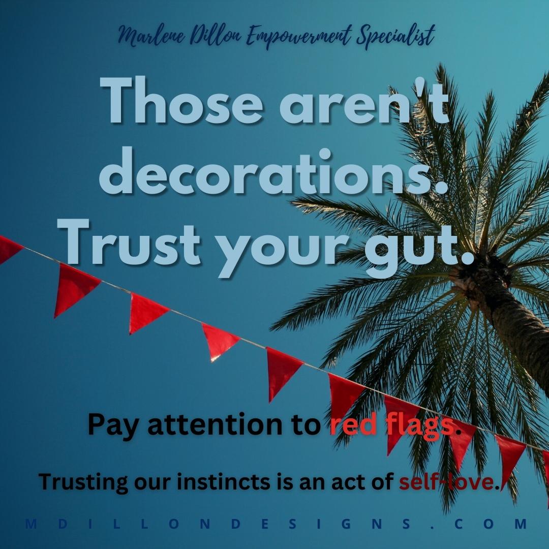 What do you really see? Are you surrounded by red flags? I’m not telling you to make any sudden moves, but at least pay attention. Stop ignoring them. Stop collecting them. Stop looking through them and SEE them. Red flags are not decorations, and we can’t keep storing them and putting them behind us. They are still present. At some point we’ve gotta wake up and accept what we see.