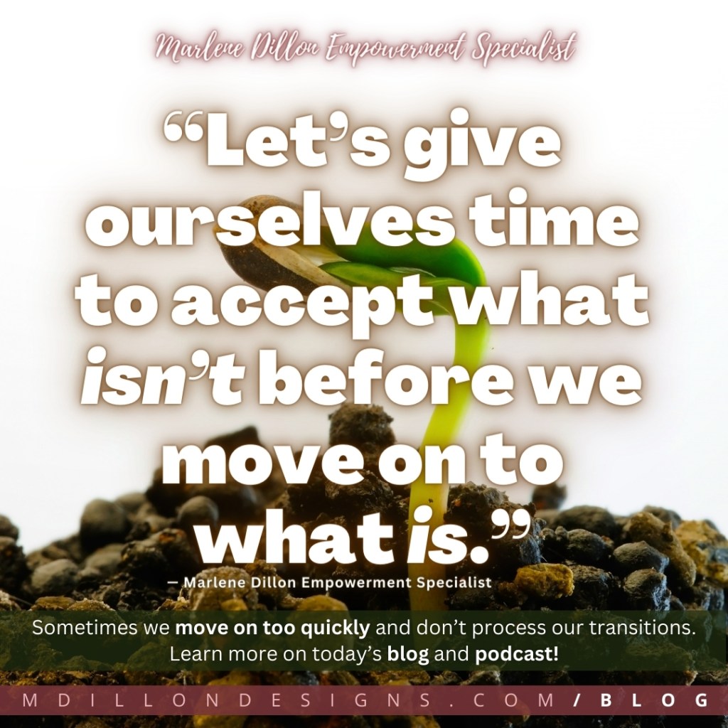 We move on so quickly from things. Let’s give ourselves time to accept what isn’t before we go on to redefine what is.