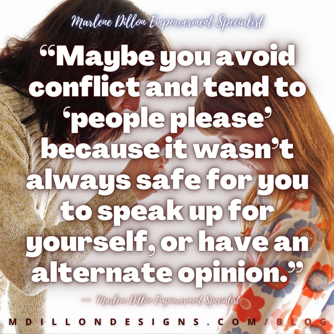 “Maybe you avoid conflict and tend to ‘people please’ because it wasn’t always safe for you to speak up for yourself, or have an alternate opinion.” — Marlene Dillon Empowerment Specialist