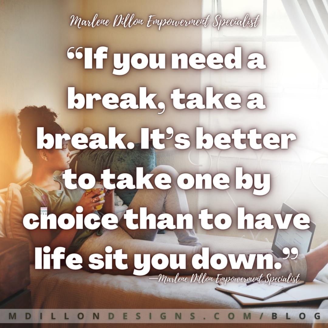 “If you need a break, take a break. It’s better to take one by choice than to have life sit you down.”