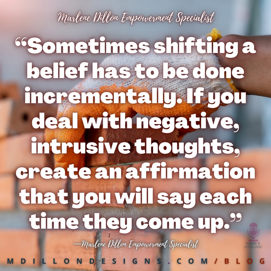 “Sometimes shifting a belief has to be done incrementally. If you deal with negative, intrusive thoughts, create an affirmation that you will say each time they come up.”