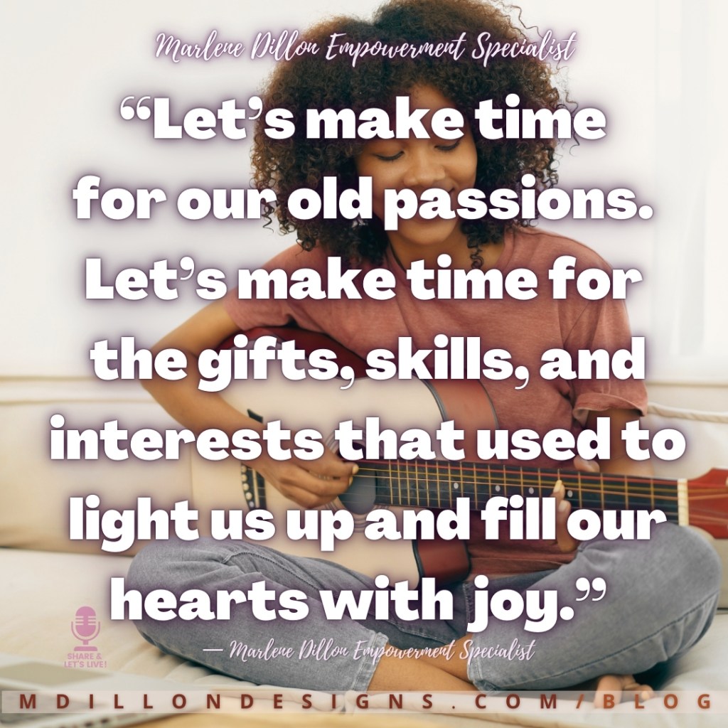 Let’s do this thing with more joy. Let’s take baby steps toward bringing our passions, gifts, and interests back into our lives. Let’s let it be okay to do what lights us up and brings us joy. Let’s embrace those discarded parts a little at a time.