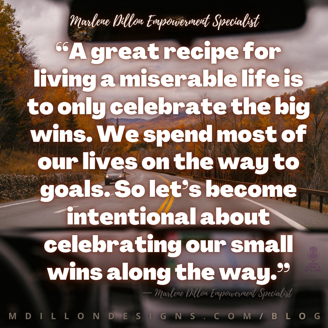 “We spend most of our lives on the way to goals. So let’s become intentional about celebrating our small wins along the way.” — Marlene Dillon Empowerment Specialist