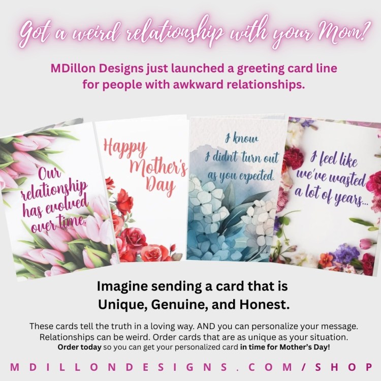 I wrote a blog & recorded today’s podcast episode for people who have difficult relationships with their mothers. If that’s you, please visit mdillondesigns.com/blog.