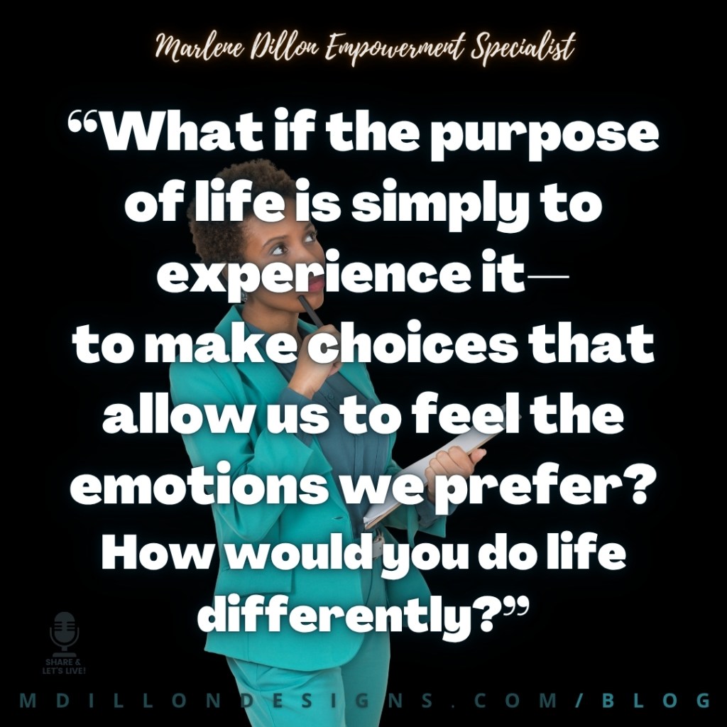 What if the purpose is to simply make choices in any given moment and to experience what they feel like, and to engage with others and objects and experience them, too?