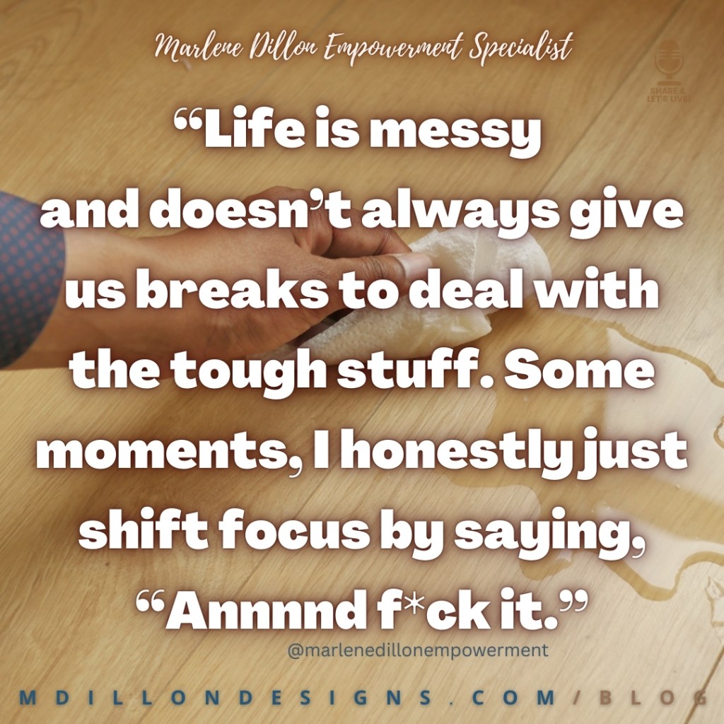 Maybe after I get off work I can cry about it in the car. Maybe after the kids go to bed I can sit with my journal and make sense of what’s going on. But for right now, I can’t focus on that. So I’m just going to say, “Annnnd f*ck it,” and keep it moving.