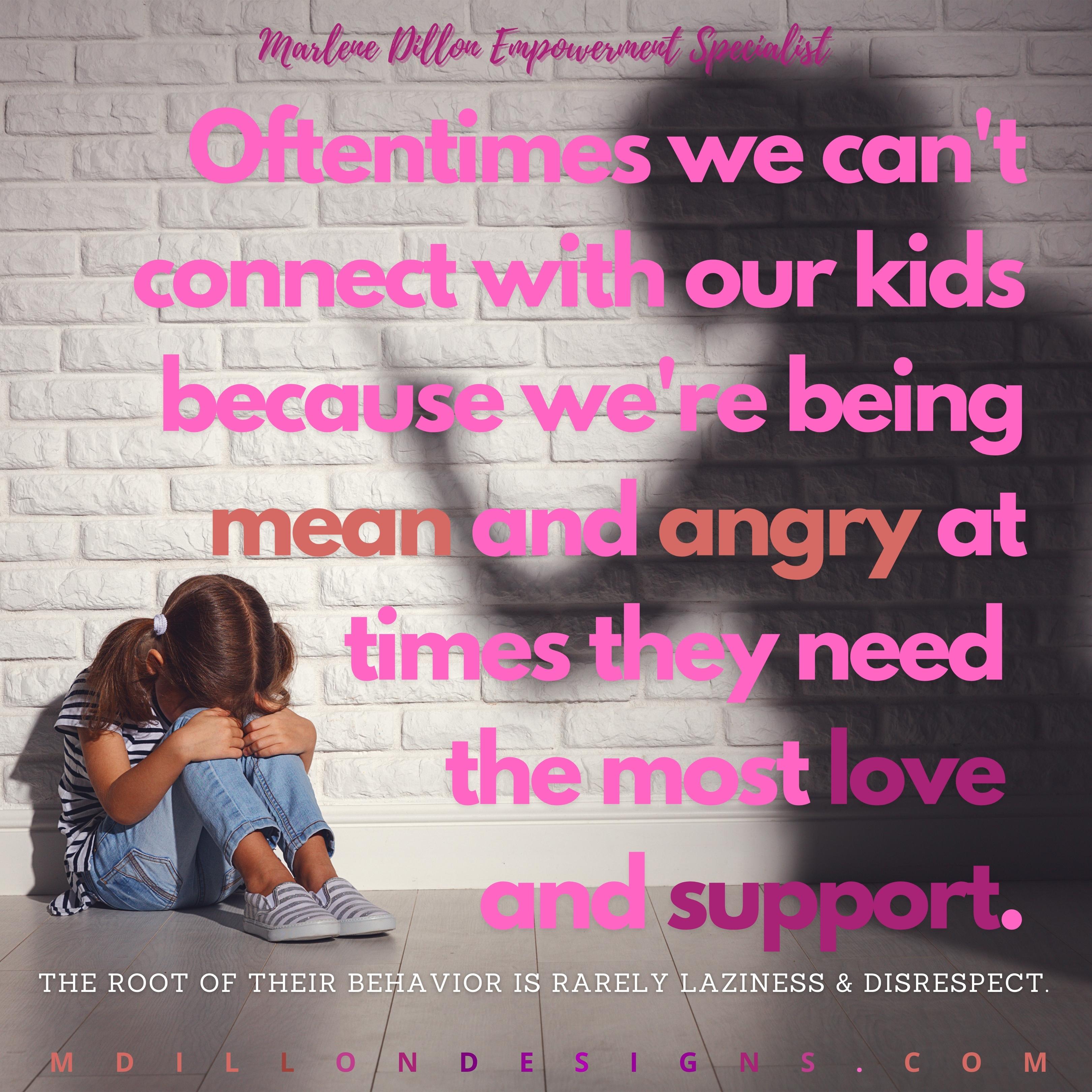 “Oftentimes we can’t connect with our kids because we’re being mean and angry at times they need the most love and support.” โ Marlene Dillon Empowerment Specialist