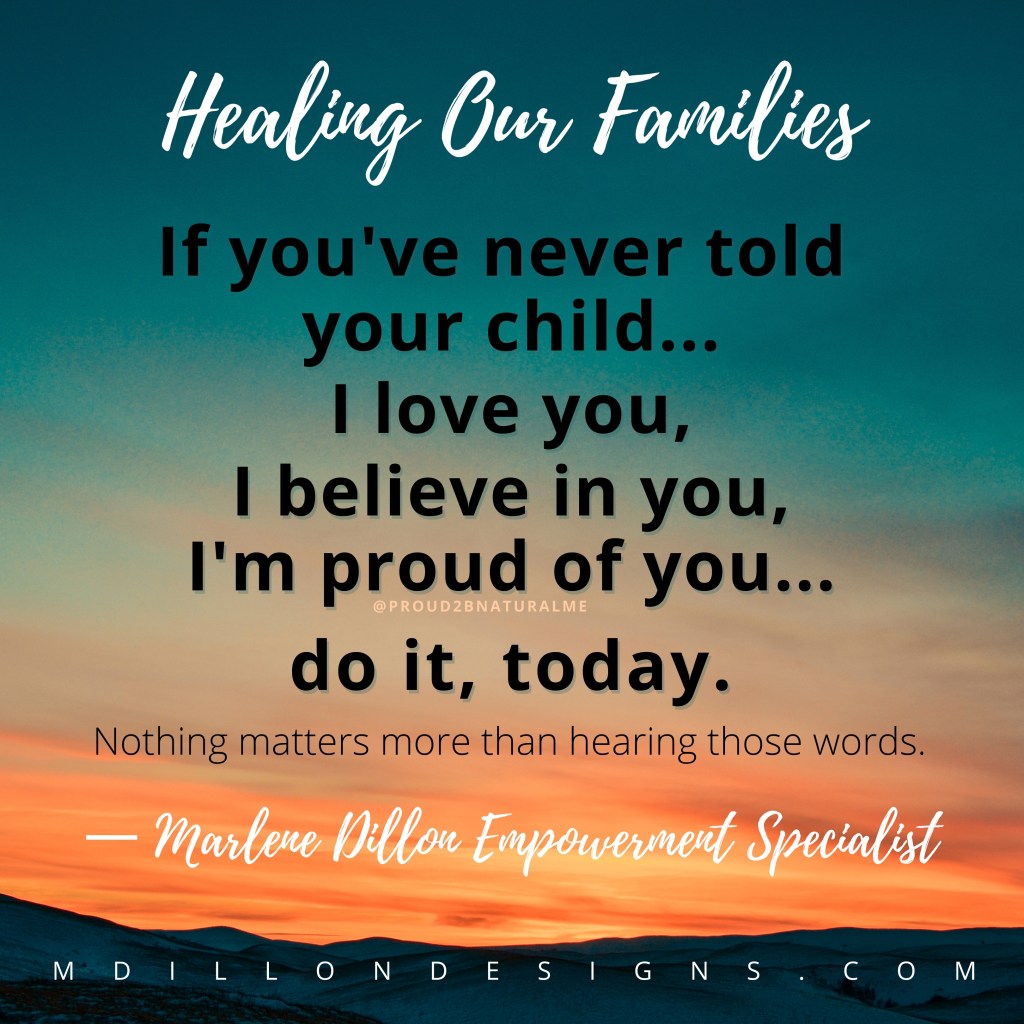 Imagine how powerful those words are when they come from your lips. If you don’t think they are, imagine hearing your own parent, guardian, grandparent or that coach who was hard on you saying these words. These affirmations are some of the most healing words a child can hear at any age. So many adults are still waiting to hear these words.