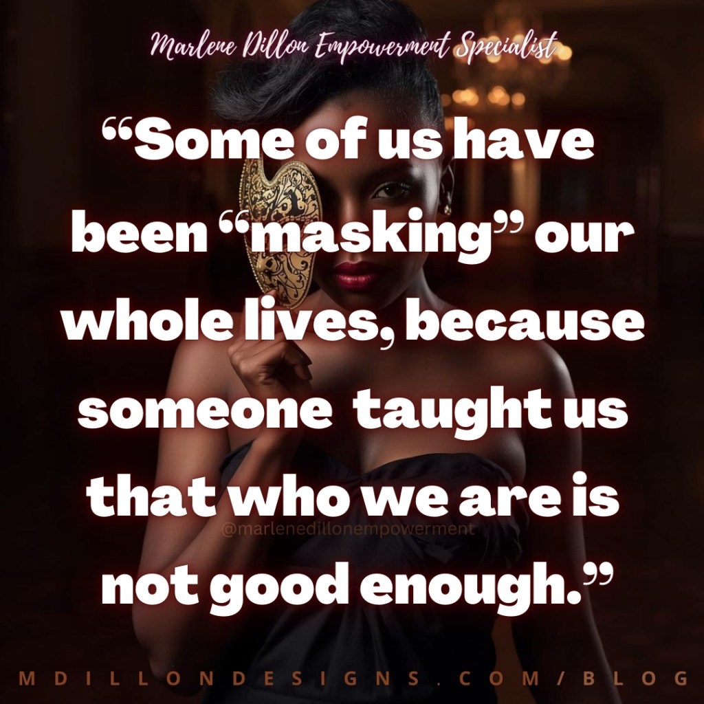 I’ll be honest, I didn’t know I was doing it–masking, pretending to like what you like, predicting your next move by studying you, showing up inauthentically to convince you that you want me around.